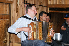 Leider hat das Wetter nicht mitgespielt, - einige behaupten gar, dass sie Schneeflocken gesehen hätten! Christian hat eine Besichtigung des Wassermuseums in Lappach organisiert. Lois und seine Crew hatten alles perfekt vorbereitet, in der Hütte wurden die frierenden Frauen gewärmt und die nassen Kleider getrocknet. Ein Festessen wurde serviert – und der Lois wurde nicht müde, uns zu weiterem Essen und Trinken aufzufordern. Es wurde gespielt, getanzt, geflirtet und gesungen.