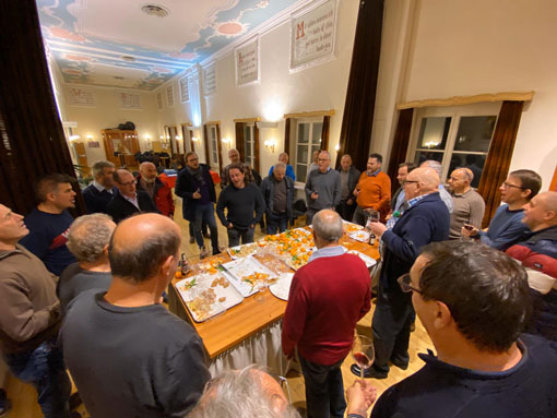 Ein altgedienter Sänger hört auf5. Juni 2019 ••• Paul Lanz (Jahrgang 1936) hat schweren Herzens bekanntgegeben, dass er nicht mehr Sänger des MGV sein kann. Nach der Übergabe eines Erinnerungsdiploms und einer guten Flasche Wein durch den Obmann bedankte er sich bei allen Sängern und unterstrich, wie wertvoll der Verein war, speziell als seine Frau verstarb und er Halt brauchte. Anschließend lud er zum »Gianni«, bei Bier und Häppchen sowie einigen Liedern wurde noch lange geredet und in Erinnerungen geschwelgt.