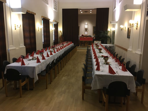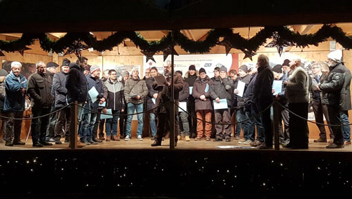 Weihnachtsfeier im Walthersaal22. Dezember: Nach dem Adventskonzert im Dom trafen sich alle beteiligten Chöre und Bläser sowie Partnerinnen der MGV Sänger und Ehrenmitglieder im festlich geschmückten Walthersaal. Bei Gulaschsuppe und Keksen konnte geplaudert und Kontakte vertieft werden. Der Runkelsteiner Singkreis gab noch einige Lieder zum Besten. Bei dieser Gelegenheit wurden auch die zwei Sänger Michael Pattis und Hubert Baumgartner für ihre langjährige Treue geehrt.