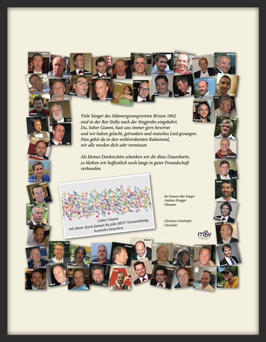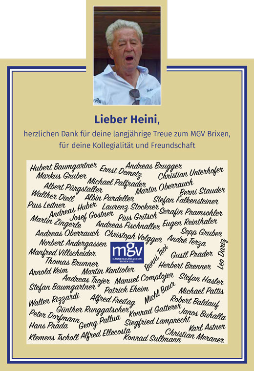 Viele, viele Jahre sang Heini Declara mit Inbrunst den 1. Tenor. Anlässlich der Törggelefeier verabschiedeten wir unseren stets netten Kollegen. Heini hielt eine emotionale Rede, er konnte einige Tränen nicht zurückhalten. Danke Heini
