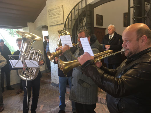 In einer bewegenden Messfeier nahmen wir Abschied von unserem Freund, Gönner und Schirmherrn. Viele Menschen aus dem ganzen Land waren gekommen, Abordnungen der verschiedensten Vereine, denen er immer zur Seite gestanden war. Auch wir gaben unser Bestes; zum Schluss sangen wir noch sein Lieblingslied ”Wisst's wo mei Hoamat isch".