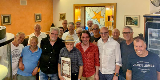 Unsere Stammbar gibt’s nicht mehr. Oft sind wir nach der Probe noch eingekehrt, fast wöchentlich gab es einen Geburtstag zu feiern. Nun, nach 52 Jahren Bar-Dienst, hat er beschlossen, dass genug ist. Wir haben uns musikalisch verabschiedet und ihm eine Erinnerungstaafel mit Geschenk überreicht. Wie viele andere Kunden ließen wir das Bierfass noch leeren …