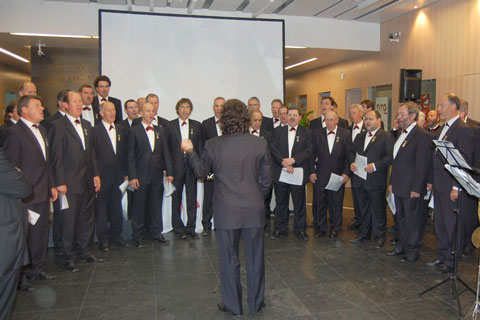 Die Sparkassenfiliale Brixen wurde gänzlich erneuert. In dieser Zeit liefen auch die Verhandlungen um den Verbleib im Walthersaal. Weil wir sozusagen Nachbarn sind, weil der Bankdirektor gleichzeitig in unserem Chor singt und weil wir dankbar sind für das Entgegenkommen durften wir die Eröffnungsfeier mitgestalten. Die Halle war berstend voll: wegen dem Geld oder wegen uns? Wahrscheinlich aber wegen des üppigen, kostenlosen Büffets.