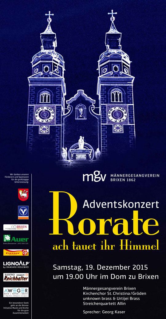 Nach vielen Proben konnten wir zum Adventskonzert in den Dom laden. Die Zuhörer kamen von weither und so wurde der Dom bis auf den letzten Sitzplatz gefüllt. Für eine besondere Atmosphäre sorgte unser Lichtmeister Karl Dander, das Konzert wurde von der RAI Südtirol aufgezeichnet.